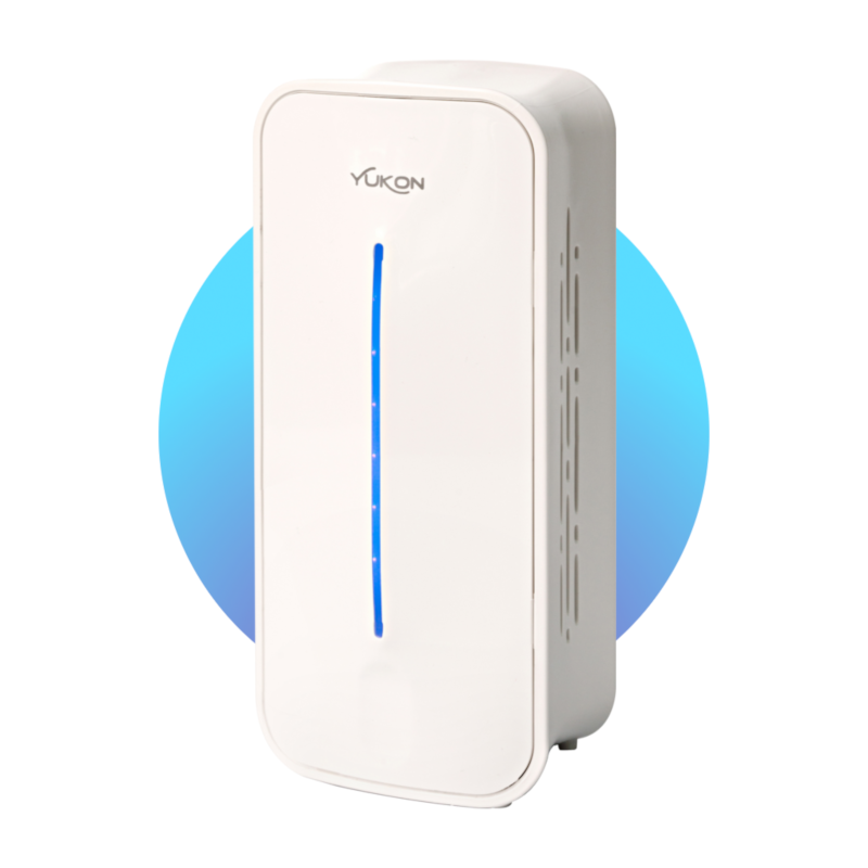 Misuratore di salubrità ambiente domestico da tavolo dotato di connessione WiFi. Yukon Air Quality Monitor è un dispositivo all'avanguardia per quanto riguarda la misurazione di agenti domestici inquinanti. Yukon si avvale di sensori ad alta precisione, così da permettere la rilevazione della qualità dell'aria domestica mettendo in primo piano la sicurezza di chi abita le mura di casa.