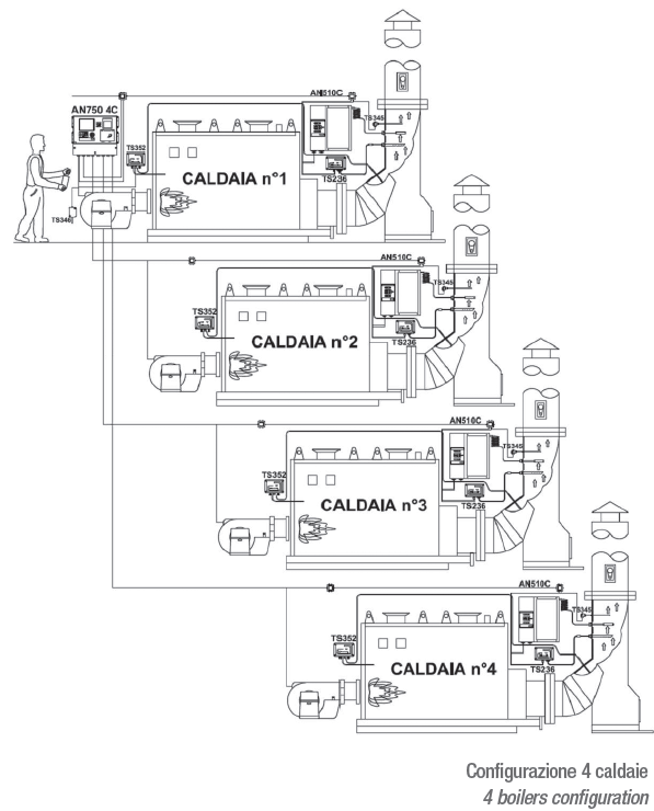 Le schede di espansione sono implementabili anche in un secondo tempo e sono provviste di morsettiera per i collegamenti relativi ai satelliti AN510, TS236/TS237 e TS345 per ogni caldaia aggiuntiva. Vedi di più...
